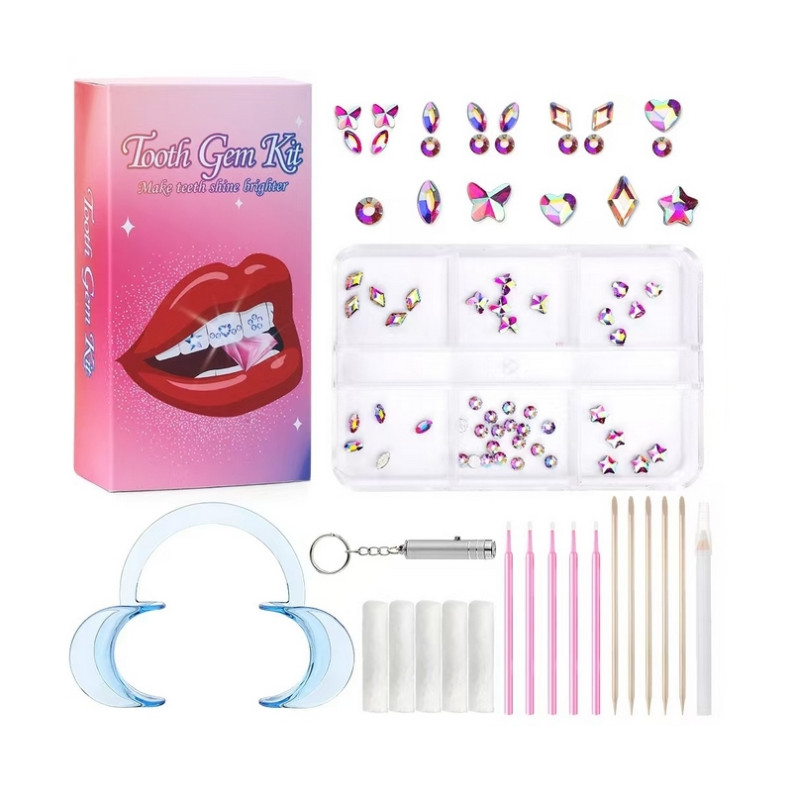 Oltre alla facilità d'uso, questo kit si distingue per i suoi design esclusivi e l'assortimento completo, che ti permettono di creare un sorriso unico che riflette la tua personalità. Con strumenti pratici e una vasta scelta di strass, si adatta ai tuoi desideri per un look sottile o audace.