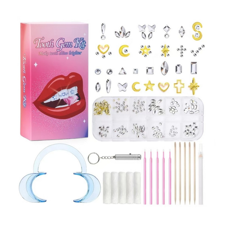 Oltre alla facilità d'uso, questo kit si distingue per i suoi design esclusivi e l'assortimento completo, che ti permettono di creare un sorriso unico che riflette la tua personalità. Con strumenti pratici e una vasta scelta di strass, si adatta ai tuoi desideri per un look sottile o audace.